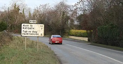 The R155 road is a regional road in Ireland, linking the R147 to the N2 in County Meath via the town of Ratoath, where it crosses the R125. It passes the main entrance to Fairyhouse Racecourse near the town.