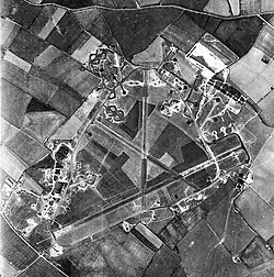 - The foundation of the wartime control tower can be seen as a disturbance on the grass[17]