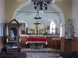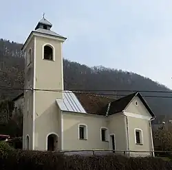The local church is dedicated to the Holy Cross and belongs to the Parish of Šmartno pod Šmarno Goro. It was first mentioned in written documents dating to 1526.[4] In 1941 it was burned down together with the village. It was restored in 1968, preserving its original layout.[8]