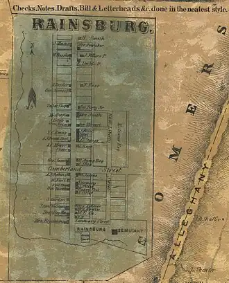 5. ^ a b "Rainsburg, Bedford County. PA town history". www.pa-roots.com. Retrieved January 12, 2023.