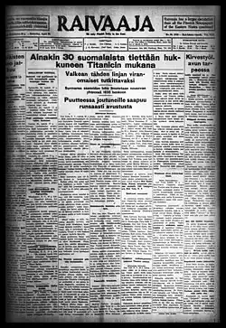 In its early years, Raivaaja was a radical newspaper loyal to the Socialist Party of America. It was the newspaper of the Finnish Socialist Federation's eastern district. The other papers were Työmies in the middle district, and Toveri in the west.[4] During the World War I the War Department agents searched Raivaaja's offices because of its radical and anti-war ideas.[7] In the early 1920s Raivaaja moved to a moderate social democratic position during the factional war of the Finnish Socialist Federation. The paper peaked with a circulation of 10,000 in 1927 before a long downward slide. The list of editors include major names of Finnish American labor movement such as Moses Hahl, Santeri Nuorteva, Aku Päiviö, Frans Josef Syrjälä and Oskari Tokoi.[4]