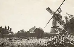 Ramsey Windmill was originally built in Woodbridge, Suffolk. It was the north westerly one of four mills on the Mill Hills shown on the 1838 tithe map. The mill was moved to Ramsey in 1842 by Henry Collins, millwright of Woodbridge. The mill was working until the Second World War, and then left to deteriorate until 1974 when the owner, Mr Michael Organ, set about restoring the mill.[2] Members of the Suffolk Mills Group assisted with work on Ramsey Windmill between 1974 and 1978.[3]