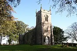 The parish church, a Grade II listed building dedicated to Saint German (Saint Germain), dates from the 12th century, although it was rebuilt in 1861 by James Fowler reusing earlier fragments.[2]