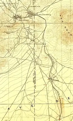 The Randsburg Railway was a 28.5-mile (45.9 km) branch line railroad in California's Mojave Desert. It originated at the main line of the Atchison, Topeka, and Santa Fe Railroad (AT&SF) at Kramer Junction, California, and terminated at Johannesburg, California, with a stop at Atolia. The Railway served as a supply link to the Rand Mine, which produced more silver than any mine in California. The Rand mine closed in 1929, as it was no longer profitable.[1][2]