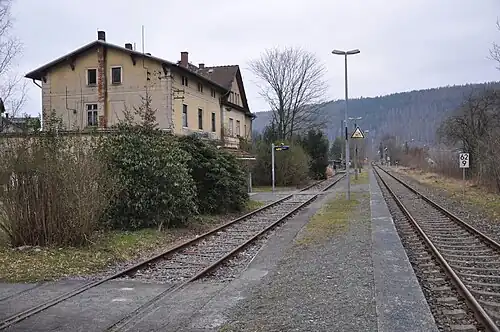 Rathmannsdorf (German: Bahnhof Rathmannsdorf) is a railway station[1] in the village of Rathmannsdorf, Saxony, Germany. Until 1938 the station was known as Wendischfähre. The station lies on the Bautzen–Bad Schandau railway. The station is served by one train service, operated by DB Regio in cooperation with České dráhy: the National Park Railway. This service connects Děčín and Rumburk via Bad Schandau and Sebnitz.[2]