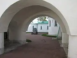 Ratnaya Palata (Russian: Ратная палата /rAht-naya pah-LAh-tah/ "Martial Chamber"[1]) is Russia's World War I museum[2] building in Pushkin town near Saint Petersburg, Russia. Designed for Romanov royal dynasty's 300th anniversary in Russian Revival architecture style together with the buildings of the church campus of the Sovereign's Cathedral of the Icon of Our Lady of Saint Theodore and the private royal railway terminal. Suggested, not long before World War I, to be built as a museum of Russian war history,[1] based on Elena Tretyakova's collection gift, the exhibition content, when the war was already under way in 1915,[1] was focused by Emperor Nicholas II on then current heroic deeds of Russian warriors, but the display, at first shown in the St Petersburg Admiralty building,[1] opened in Martial Chamber for only a short time before the end of Russian Empire in February 1917,[3] and was closed down a year later[3] by Soviet authorities. Having been used after that for unrelated purposes,[4] the Martial Chamber building was legally transferred to the Tsarskoye Selo Museum complex in 2008[1] and was cleared, restored, given a new collection of exhibits and reopened as modern Russia's first museum of World War I[2] by the centennial of its beginning in August 2014.[1] The exhibition is titled "Russia in the Great War" after a name for the war used at the time of its battles.[1]