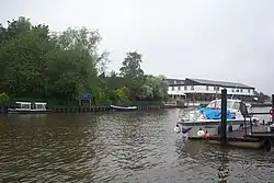 In more recent times, the island has been used as a boating centre. Kingston Rowing Club, founded in 1858, occupied Raven's Ait for 76 years before moving in 1935 to Kingston, where it is now based in Canbury Gardens.[5][6] Raven's Ait was then used by Theatre and Cinema Equipment Ltd as a warehouse,[7] until bought in 1944 and presented to the Sea Cadet Corps by an anonymous supporter, for use as a river headquarters.[8] It was the location of the Corps' first national regatta in September 1954.[9]