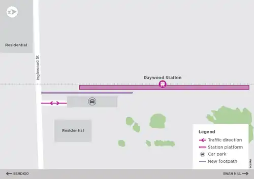 Raywood has one platform, and is served by Swan Hill line trains.[8]