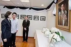 38. ^ Sophia Yeh; Elizabeth Hsu (17 October 2016). "President signs book of condolences mourning death of Thai monarch". Focus Taiwan. Retrieved 22 October 2016.