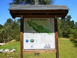That portion of Red Creek, from Mississippi Highway 26, west of Wiggins, to its convergence with Black Creek, is a public waterway and a designated scenic stream with a 100-ft (30-m) wide, heavily wooded riparian zone.[5]