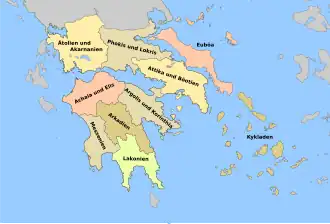 On 3 April 1833, a royal decree reformed the country's administrative system: municipalities (δῆμοι, demoi) became the first-level administrative units, grouped into 47 provinces (ἐπαρχίαι, eparchiai) and then into ten prefectures (νομαρχίαι, nomarchiai).[24] At the head of the provinces and prefectures was an appointed official (eparch/nomarch), while municipalities were led by an elected demarch. An elected council was envisaged to assist these officials at each level. While paying lip service to the traditions of local self-government that had emerged in the Greek world during Ottoman rule, in practice the system was highly centralized, since the councils' authority was deliberately limited, and the limited suffrage used in the election of the demarchs led to their de facto selection by the government.[24] The regency was motivated in this by the subversion of local authorities by the local magnates; much like their predecessor, Governor Kapodistrias, the regents saw in a strongly centralized system the only answer capable of eliminating the magnates' political power.[16]