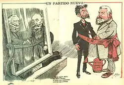 At the head of the Agrarian League was Germán Gamazo, Minister of Overseas Territories in Sagasta's government, although his actions responded more to the interests of the faction of political friends that he headed, than to the pressure of the agrarian landowners grouped in the League.[40] This is what explains why the "gamacistas" did not support the protectionist movement until the summer of 1888 —despite the fact that it had begun much earlier— using it in the political operation of harassment of Sagasta by various liberal factions, and that they put a stop to it when in the summer of the following year they sought an agreement with Sagasta.[41]
