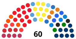 Following the modification of the regional statute, with the constitutional law 3/2013, the number of regional councillors was reduced from 80 to 60.[1]