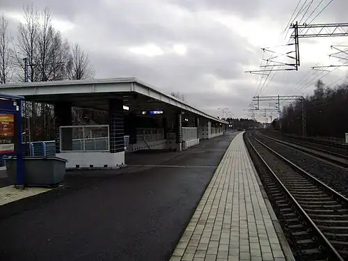 Rekola railway station (Finnish: Rekolan rautatieasema; Swedish: Räckhals station) is a Helsinki commuter rail station located in the district of Rekola in the city of Vantaa, Finland. It is located approximately 20 kilometres (12 mi) from Helsinki Central railway station.