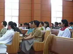 The internationally supported Pyongyang University of Science and Technology, which opened in 2010, operates with a Christian ethos.[85] Christian aid groups, including the American Friends Service Committee, the Mennonite Central Committee, the Eugene Bell Foundation, and World Vision, are able to operate in the country, but not allowed to proselytize.[86][87][88]