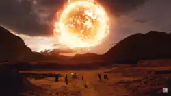 One Ok Rock performing the song in front of a massive artificial sun within a mountainous region.