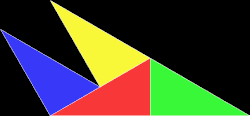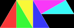 The "sphinx" polyiamond rep-tile. Four copies of the sphinx can be put together as shown to make a larger sphinx.