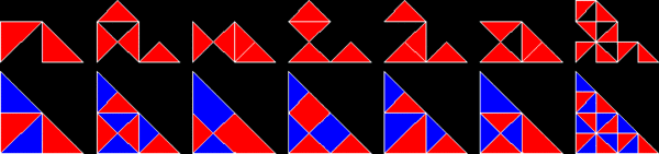 Some rep-tiles are based on polyforms like polyiamonds and polyominoes, or shapes created by laying equilateral triangles and squares edge-to-edge.