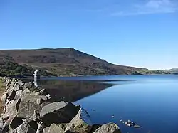 Grwyne Fawr Reservoir, the only reservoir within the Black Mountains massif was completed by Abertillery and District Water Board in 1928, serving to supply water to various towns in the traditional county of Monmouthshire.[8] A holding reservoir in Cwmtillery was constructed as a part of the scheme. Blaenycwm Reservoir to the northwest of Brynmawr, was originally constructed as a water supply for Nantyglo Ironworks but enlarged for public supply during the 20th century.[9]