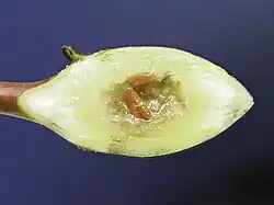 | Larva in cut-open gall (top) and stem gall (bottom) | |