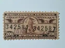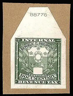 Governing authorities in the Philippines have issued a variety of stamps for internal revenue taxes and other fiscal taxes since 1856.[2] Prior to 1856, internal revenues were collected via stamped paper. Revenue stamps for the Philippines were issued by the Spanish East Indies government (1856–1898), the revolutionary government of the First Philippine Republic (1898–1901), the Insular Government of the United States (1901–1935), the government of the Commonwealth of the Philippines (1935–42, 1945–46), the Philippine Executive Commission (1942–44) and the Republic of the Philippines (1946–present).