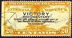 The U.S. established a military government in Manila in August 1898 during the Spanish–American War. It allowed the use of Spanish government revenues for fiscal purposes until their supply was exhausted in 1904. By this time, the United States had established a civilian administration called the Insular Government (1901–1935). This was a territorial government for the Philippine Islands. The first U.S. issues were printed in Manila in 1900 using the same designs as the Spanish issues with the exception that they were inscribed "United States Internal Revenue in the Philippine Islands".[8] The Internal Revenue Law of 1904 provided for general internal revenue taxes, documentary taxes and transfer of livestock. A wide variety of issues exist in denominations ranging from one centavo to 20,000 pesos. Revenues issued from 1905 until 1935 were engraved and printed by the U.S. Bureau of Engraving and Printing in Washington, D.C.