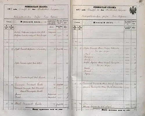 Revision lists (Russian: Реви́зские ска́зки, romanized: Revizskie skazki), are a series of census lists of the taxable population of the Russian Empire, taken between the early 18th century up until the end of the 19th century. The lists were taken to account and register information to collect tax revenue to fund the Imperial Army.