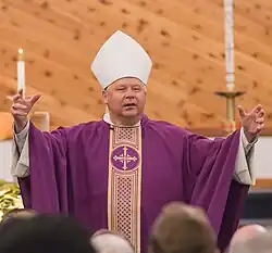 On January 12, 2009, Stika was appointed bishop of the Diocese of Knoxville by Pope Benedict XVI.[7] He was ordained on March 19, 2009, by Rigali, with Archbishop Joseph Kurtz and Bishop Robert Shaheen serving as co-consecrators, at the Knoxville Convention Center in Knoxville.[8] Stika selected as his episcopal motto: Iesu Confido In Te ("Jesus, I Trust in You").[9]
