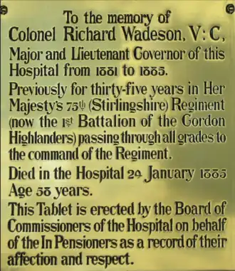 Plaque to Colonel Wadeson in the Royal Hospital, Chelsea