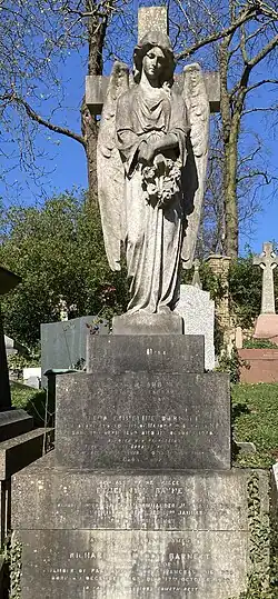 He died on 17 October 1930, aged 66, following complications after an operation[3] and is buried in a family vault on the eastern side of Highgate Cemetery.