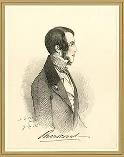 Lord Powerscourt married his first cousin Lady Elizabeth Frances Charlotte, daughter of Robert Jocelyn, 3rd Earl of Roden, in 1836. They had three sons.[4] He died in August 1844, aged 29,[5] and was succeeded in the viscountcy by his son Mervyn, a great-great-grandfather of Sarah, Duchess of York. Lady Powerscourt married Frederick Stewart, 4th Marquess of Londonderry, in 1846.[6]