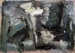 In the late 1950s, having internalized the ideas of the Plasticiens, she abandoned the confines of geometric works and began studying the ideas of Zen and Confucius; these ideas began to translate into her paintings characterized by lines and strokes in black and white.[8] She was also struck by the work of the Abstract Expressionists in New York and in particular, impressed by the work of Franz Kline. Many of these elements and themes would be revisited in the works that soon followed, increasing in gestural quality and characterized with heavy impasto with a palette knife or spatula.[9] Her production began to increase and Letendre began to come into her own, winning first prize in the Concours de la Jeune Peinture in 1959 and the Prix Rodolphe-de-Repentigny in 1960. This prize (worth $300) and the additional sales that followed enabled Letendre to quit her job and paint full-time – it also allowed her to buy more paint and canvas.[10]