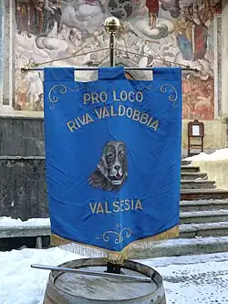 The heraldic symbol of dog, vigilant and loyal to the power, was associated to Riva but was never official—the seal of the municipality bears the two belfries of the church - but it is still present in local popular culture as the Garuf, the local term for "hunting dog", mainly shown as symbol of the local carnival opposed to the "Swine", Alagna's mask, a pig.