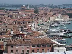 In 1172 on the Riva at the entrance to Calle delle Rasse, Marco Cassolo stabbed Doge Vitale II Michiel who was on his way to the nearby church of San Zaccaria for Easter celebrations. Captured immediately, Cassolo was tried, convicted and executed, and the Senate resolved that his house, which was located on the Riva at the very spot of the attack, should be razed to the ground and forbade its reconstruction in stone in perpetuity, allowing only one-story wooden dwellings to be built.[2] The route the doge had to take to reach the church of San Zaccaria was also changed: no longer along the Riva degli Schiavoni but internally through the campo dei santi Filippo e Giacomo. The ban on stone construction was respected until 1948, when the wooden houses were torn down and replaced by the current modern wing of the Hotel Danieli.