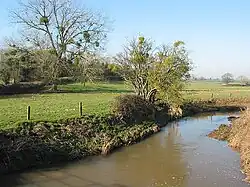 The River Leadon (/ˈlɛdɒn/) is a river in Herefordshire and Gloucestershire, England, a tributary of the River Severn. It rises just south of the village of Acton Beauchamp, and flows south past Bosbury to the town of Ledbury, which takes its name from the river.[1] It then flows south and east past Dymock, Upleadon and Highleadon to join the Severn at Over, just west of Gloucester. The river is approximately 32 miles (51 km) long.[2][3]