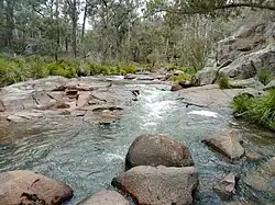 The Great Western Highway traverses the River Lett near Hartley, at the bottom of the ascent of River Lett Hill.[3] The remains of an old timber bridge that carried traffic on the Great Western Highway over the River Lett can be found near the settlement of Hartley.[4]