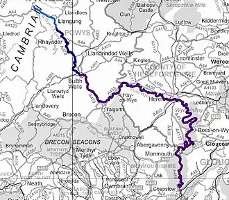 It is also a Special Area of Conservation[14][15] and one of the most important rivers in the UK for nature conservation. It is an important migration route and wildlife corridor, as well as a key breeding area for many nationally and internationally important species. The river supports a range of species and habitats covered by European Directives and those listed under Schedule 5 of the Wildlife and Countryside Act 1981.[13] In Powys the river lies within the Radnorshire Environmentally Sensitive Area. Much of the lower valley is an Area of Outstanding Natural Beauty.