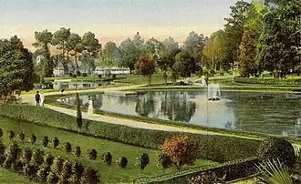 The area was identified as a 14-acre public park when the Riverside section was platted along the St. Johns River in 1869. The property contained two lakes that were spring-fed and home to numerous waterfowl. However, development did not begin until years later when the land was donated to the city. Some time after 1890, a carriage lane and walking paths were created, stone bridges were constructed, and ornamentals were planted, including camphor trees. By 1907, it was one of the prettiest parks in the southern U.S. with picture postcards capturing the beauty. Tennis courts and a bandstand were built, attracting even more people to the park's natural features. When Margaret Street was laid out, it cut off the southwest corner of the park, and the north side of the property was used by Interstate 95, reducing the parcel to its current 11.4 acres. A city-owned brick storage warehouse was constructed on the park property along College Street in 1940, which is no longer used.[3]