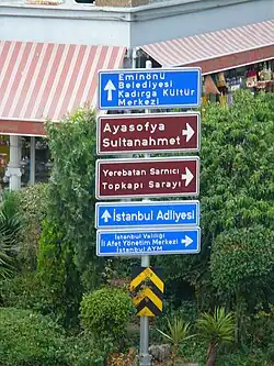 Road signs in Turkey conform to the general pattern of those used in most other European countries and to those set out in the Vienna Convention on Road Signs and Signals. They are regulated in the Trafik İşaretleri Elkitabi (Traffic Signage Manual).[1]