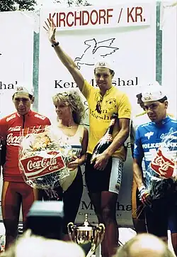 While riding with the Australian Olympic road team, Rob Crowe won the overall title 'yellow jersey' of the Ken Marshal International Amateur Tour of Austria in 1991.