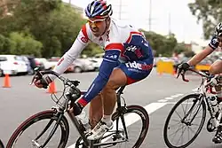 Highlights of Crowe's career include dual Australian Road Race Championship wins in the 1991 Australian Men's Road Race and 1991 Australian Men's Individual Time Trial, his participation in the men's team time trial at the 1992 Barcelona Olympics, and also his participation as an Australian Paralympic tandem cycling pilot.[2][3] He piloted Kieran Modra in endurance events, most notably at the 2004 Athens Games.[4] At the games, he won a gold medal in the Men's Individual Pursuit Tandem B1–3 event, in which he and Kieran Modra set a new World Record (4:21.451),[5] and for which he received a Medal of the Order of Australia,[1] and then a bronze medal in the Men's Road Race / Time Trial Tandem B1–3 event.[6] He was an Australian Institute of Sport scholarship-holder training under road cycling coach Heiko Salzwedel during the 2-year training lead-up program in 1991 and 1992 before the Barcelona Olympic Games.[7] He was also part of the team Giant–Australian Institute of Sport.