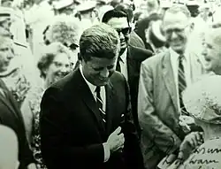 President Kennedy and his former press secretary Bob Thompson (walking just behind Kennedy)