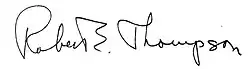 Robert Elliott Thompson (June 28, 1921 – November 19, 2003) was a top political writer and Washington journalist known for his sharp analysis and crisp writing of political affairs, who knew and covered every president from Harry Truman to George W. Bush. Over the course of a long career he rose through the ranks to become, among other things, a White House correspondent, publisher of the Seattle Post-Intelligencer, and national editor and Washington D.C. bureau chief for Hearst Newspapers. He also worked as John F. Kennedy's press secretary in the late 1950s, quitting just prior to the then-Senator's presidential campaign.