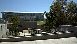 The complex features fine art murals[6] and a marble memorial depicting the complex's namesake, a public park, a swimming pool and preservation of pieces of the original hotel.[7][8][9][10] The site of the ballroom where Kennedy gave his last speech is now occupied by a school library,[11] while the location of the pantry where he was fatally wounded is now a storage room.[12][13]
