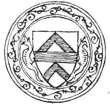 ![]() Arms of Robert FitzWalter, 1st Baron Fitzwalter: Or, a fess gules between two chevrons of the last | |