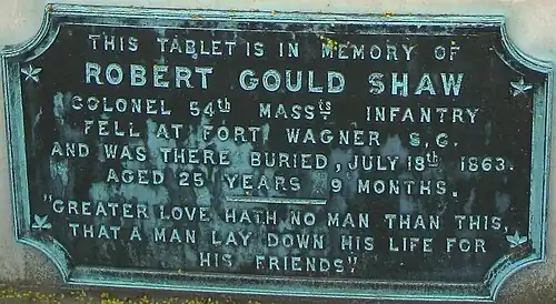 9. ^ a b c "Robert Gould Shaw". American Battlefield Trust. Retrieved April 29, 2019.