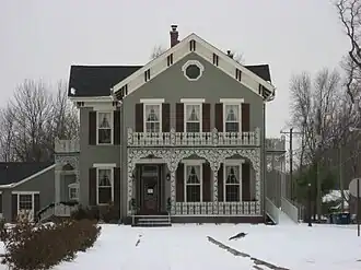 Robert L. Wilson House is a historic home located at Noblesville, Hamilton County, Indiana. The oldest section is dated to the late-1860s, and is a two-story, Italianate style brick dwelling. It consists of four sections and was likely constructed in three parts, taking its present form by 1898. The house features three two-level cast iron porches.[2]: 2
