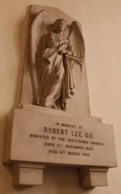 Robert Lee FRSE (1804-1868) was the first Professor of Biblical Criticism at the University of Edinburgh. He was both minister of Old Greyfriars Kirk and a Dean of the Chapel Royal serving Queen Victoria.