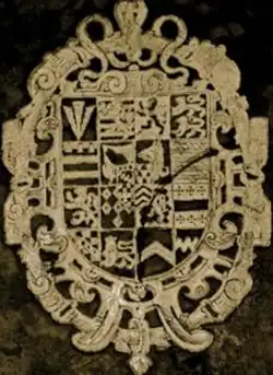 15. ^ These were the arms of the heiress Barbara Gammage borne as an escutcheon of pretence by her husband Robert Sidney, 1st Earl of Leicester, as is visible on the imprints of 55 books donated by him to the Bodleian Library. The earlier arms of Gammage found on various rolls of arms omitted the escallops and place the bend fusilly over all