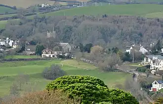 Dittisham in Devon, with St. George's Church where Robert Sparke Hutchings was rector
